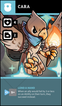 Unique Skill: LEND A HAND - When an ally would fail by 3 or less on an Ability on their turn, they succeed instead.