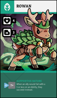 Unique Skill: SUPPORTIVE NATURE - When an ally would fail with a 5 or less on an Ability, they succeed instead.