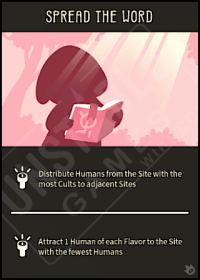 | Distribute Humans from the Site with the most Cults to adjacent Sites | |