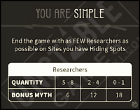 End the game with as FEW Researchers as possible on Sites you have Hiding Spots