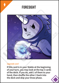 C&C Print: If this card is in your Stable at the beginning of your turn, you may look at the top 3 cards of the deck. If you do, add 1 of them to your hand, then shuffle the other 2 back into the deck and skip your Draw phase.