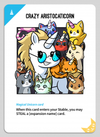 '''<u>Custom Text</u>: When this card enters your | '''<u>Custom Text</u>: When this card enters your Stable, you may STEAL an [expansion name] card. | ||