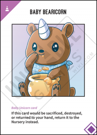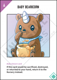 - If a Baby Unicorn Card would be moved to a player's hand, the Discard Pile, or the Deck it is returned to the Nursery instead.