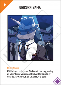Original Text: If this card is in your Stable at the beginning of your turn, you may DISCARD 2 cards. If you do, SACRIFICE or DESTROY a card.