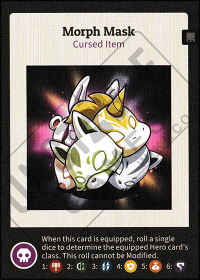 When this card is equipped, roll a single dice to determine the equipped Hero card's class. This roll cannot be modified.