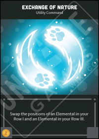 - Command of Nature Base Deck: Swap the positions of an Elemental in your Row I and an Elemental in your Row III.