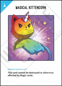 '''RESULT''': ''[[Seven Sacker]] can NOT be played if [[Magical Kittencorn]] is in your [[UU Game Terminology - Stable|Stable]], [[Seven Sacker|seven sackers]] are [[Magic | '''RESULT''': ''[[Seven Sacker]] can NOT be played if [[Magical Kittencorn]] is in your [[UU Game Terminology - Stable|Stable]], [[Seven Sacker|seven sackers]] are [[Magic cards]] and the [[Magical Kittencorn]] is [[Immunity|Immune]] to [[Magic cards]] and would remain in [[UU Game Terminology - Stable|Stable]].'' | ||