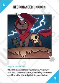 2nd Edition: When this card enters your Stable, you may DISCARD 2 Unicorn cards, then bring a Unicorn card from the discard pile into your Stable.