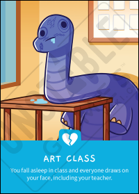 Revision as of 13:58, 6 June 2021 by Shicala (talk | contribs) (Created page with "200px|thumb|Image: Perils of Puberty Expansion<br>Type: Disaster Card__NOTOC__ ==Card Text== *You fall asleep in class and everyone draws on your fa...")