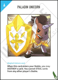 - Second Print: When this card enters your Stable, you may DESTROY a card. You cannot STEAL cards from any other player's Stable.