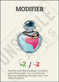 Play this card after any player (including you) rolls the dice. +2 or -2 to that roll.