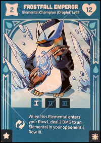 - Command of Nature Base Deck: When this Elemental enters your Row I, deal 2 DMG to an Elemental in your opponent's Row III