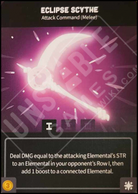 - Command of Nature KSE Extras: Deal DMG equal to the attacking Elemental's STR to an Elemental in your opponent's Row I, then add 1 boost to a connected Elemental.