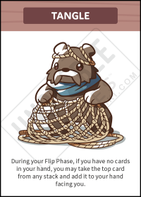 • During your Flip Phase, if you have no cards in your hand, you may take the top card from any stack and add it to your hand facing you.
