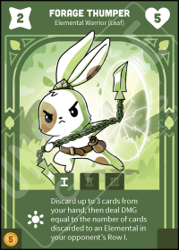 - Command of Nature Base: Discard up to 3 cards from your hand, then deal DMG equal to the number of cards discarded to an Elemental in your opponent's Row I.
