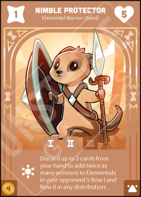 - Sand and Wind Expansion: Discard up to 2 cards from your hand to add twice as many erosions to Elementals in your opponent's Row I and Row II in any distribution.