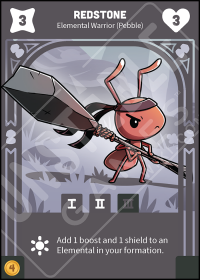 - Command of Nature Base: Add 1 boost and 1 shield to an Elemental in your formation.