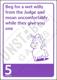 The Dare: Beg for a wet willy from the Judge and moan uncomfortably while they give you one Point Value: 5 Challengable?: No *August 2018 Kickstarter - Quantity of card: 1
