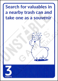 The Dare: Search for valuables in a nearby trash can and take one as a souvenir Point Value: 3 Challengable?: No *August 2018 Kickstarter - Quantity of card: 1