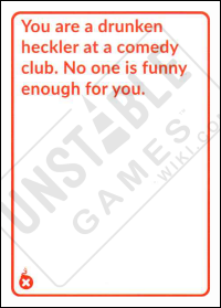 The Penalty: You are a drunken heckler at a comedy club. No one is funny enough for you. *August 2018 Kickstarter - Quantity of card: 1