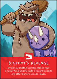 When you add this Disaster card to your Disaster Area, you may add a Hazard token to any other player's Escape Route.