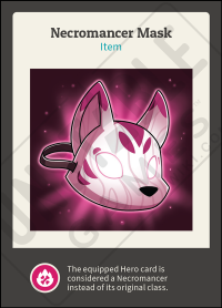 The equipped Hero card is considered a Necromancer instead of its original class.