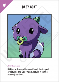 Original Text: If this card would be sacrificed, destroyed, or returned to your hand, return it to the Nursery instead.