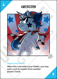 - Second Edition: When this card enters your Stable, you may pull a card at random from another player's hand.