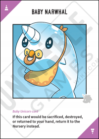 - If a Baby Unicorn Card would be moved to a player's hand, the Discard Pile, or the Deck it is returned to the Nursery instead.