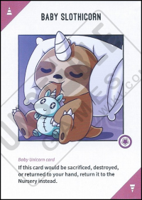 - If a Baby Unicorn Card would be moved to a player's hand, the Discard Pile, or the Deck it is returned to the Nursery instead.