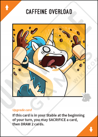 Si cette carte se trouve dans votre Écurie au début de votre tour, vous pouvez SACRIFIER 1 carte PIOCHER 2 cartes.
