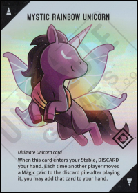 - Second Edition: When this card enters your Stable, DISCARD your hand. Each time another player moves a Magic card to the discard pile after playing it, you may add that card to your hand.