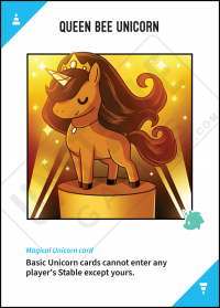 - It MUST be placed into the stable with the Queen Bee unicorn card.