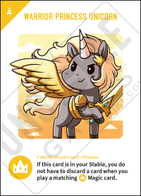 - Kids Edition Print: If this card is in your Stable, you do not have to Discard a card when you play a matching